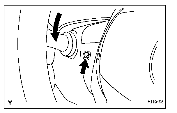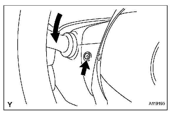 c. Turn the steering wheel to the right, and install the screw indicated in the illustration.