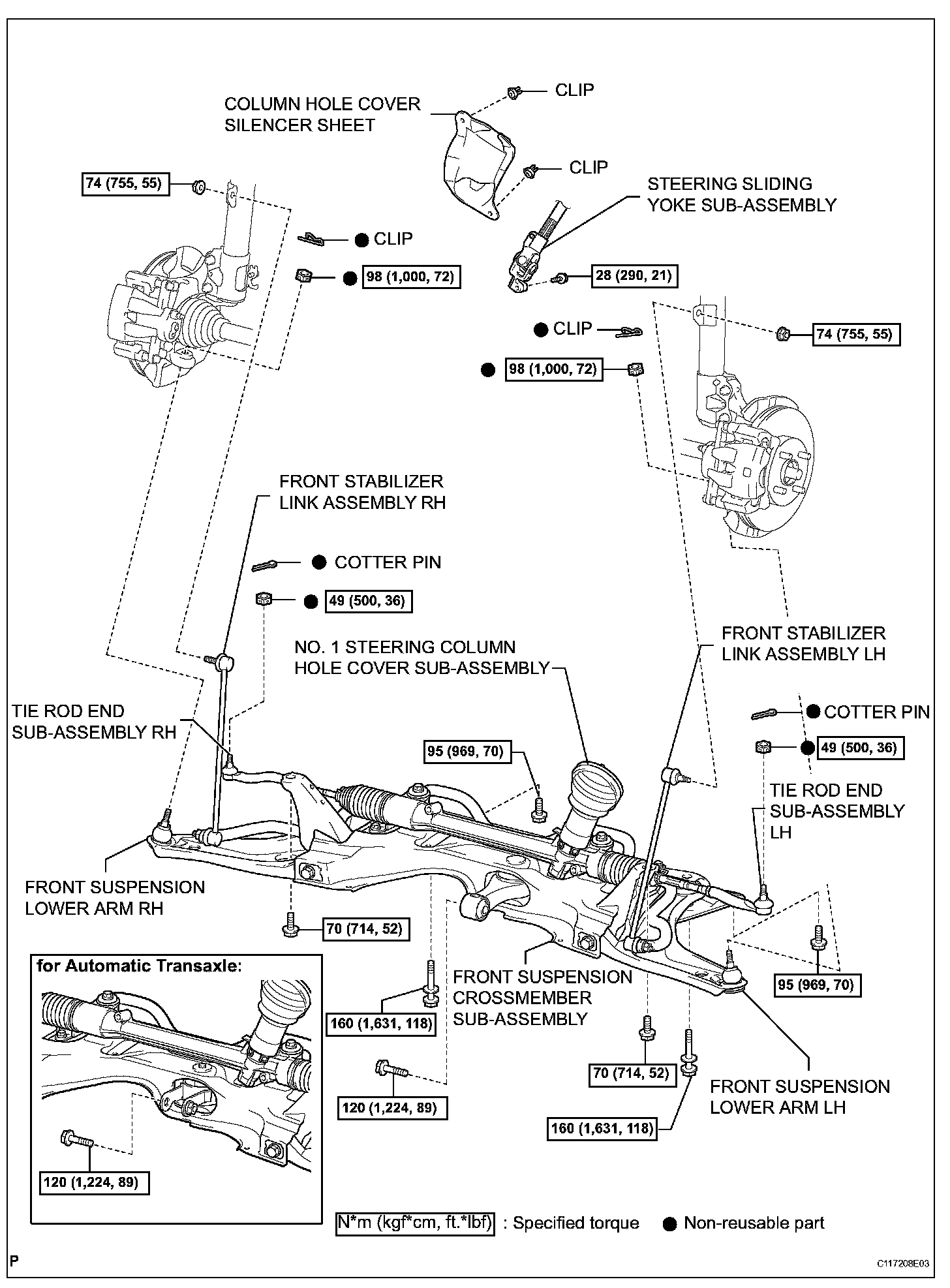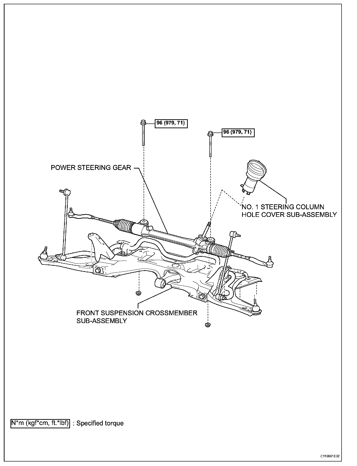95 N*m (969 kgf*cm, 70 ft.*lbf) for Bolt C