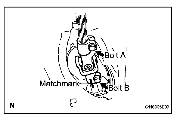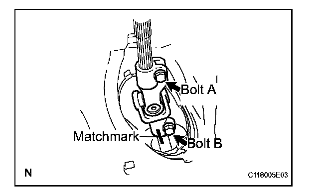 (c) Loosen bolt A, remove bolt B and separate the steering intermediate shaft assembly.