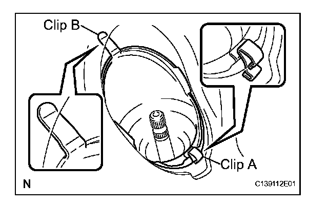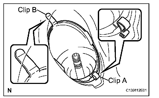 (a) Install clip B onto the body portion and install No. 1 steering column hole cover sub-assembly onto the body portion with clip A.