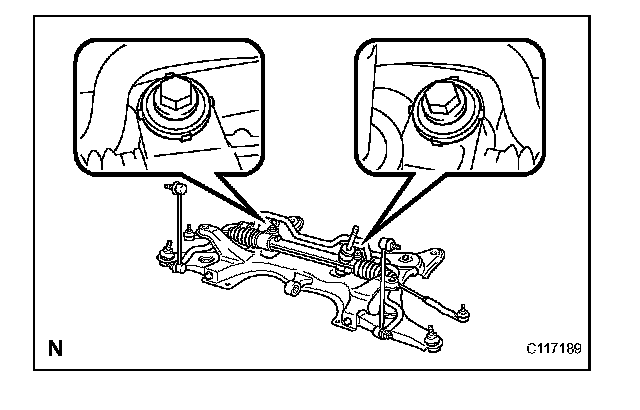 (a) Remove the 2 bolts and 2 nuts and remove the power steering gear from the suspension crossmember.