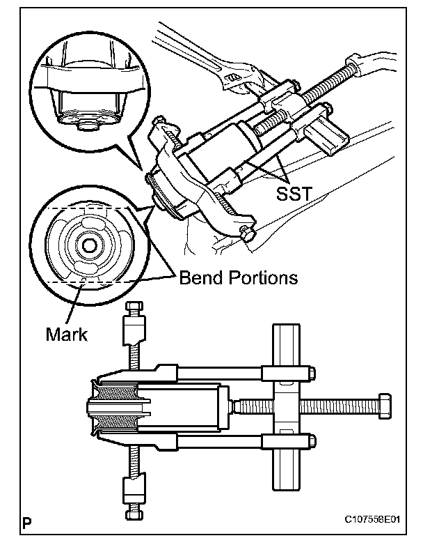 (a) Place a match mark on the axle beam with it aligned with the bush mark.