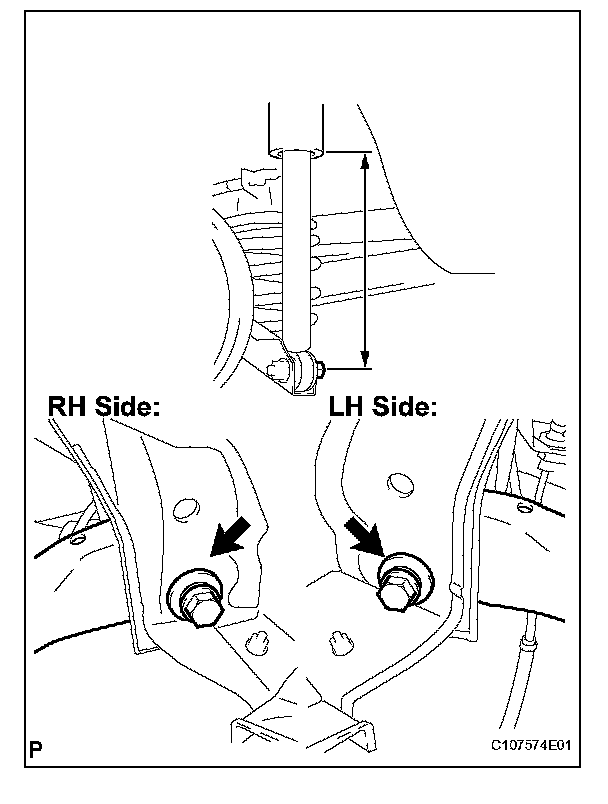 (a) Suspend the jack on the rear axle spring seat and adjust the length of the shock absorber to the reference value.