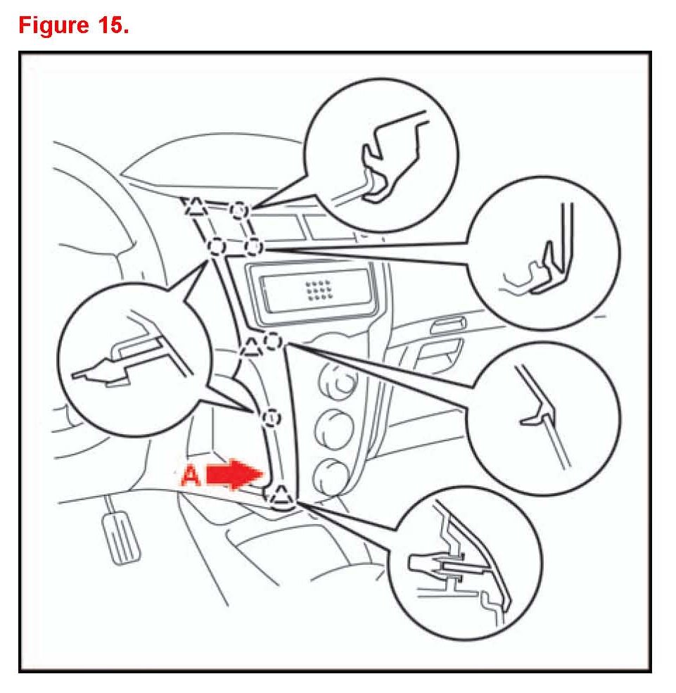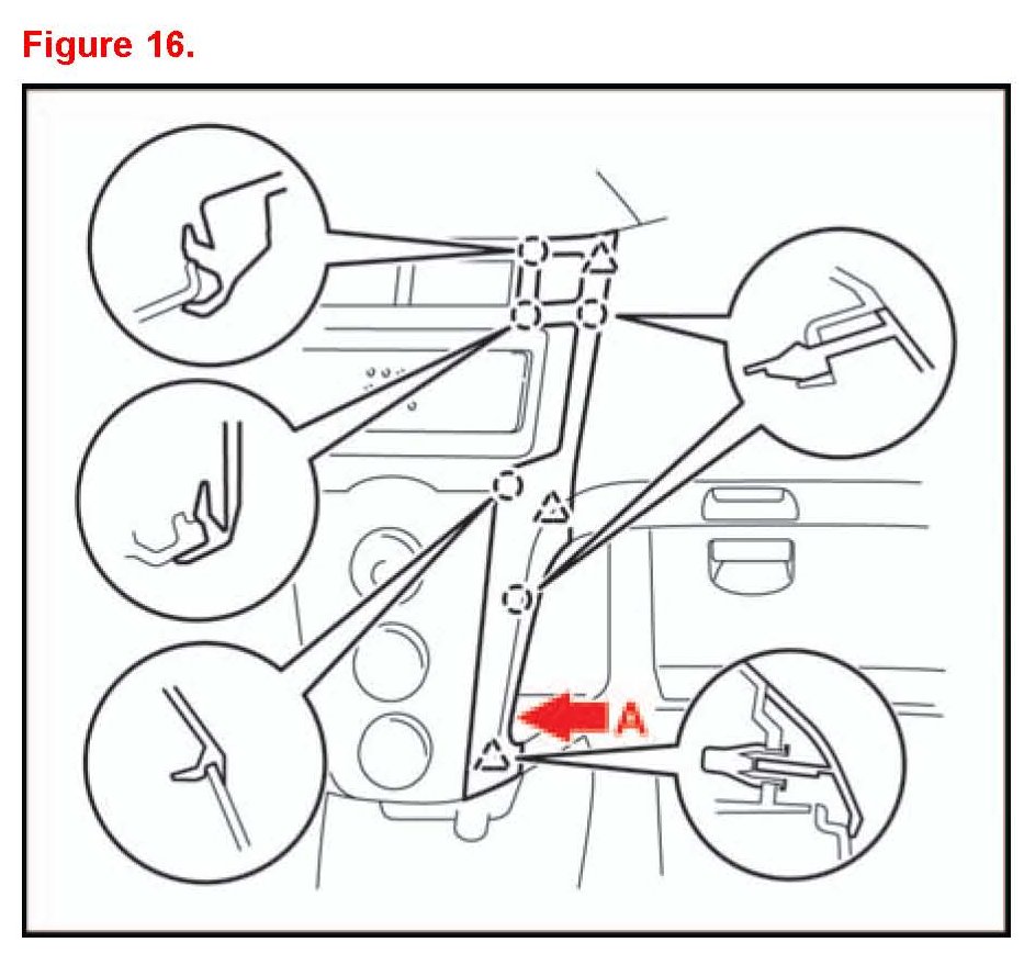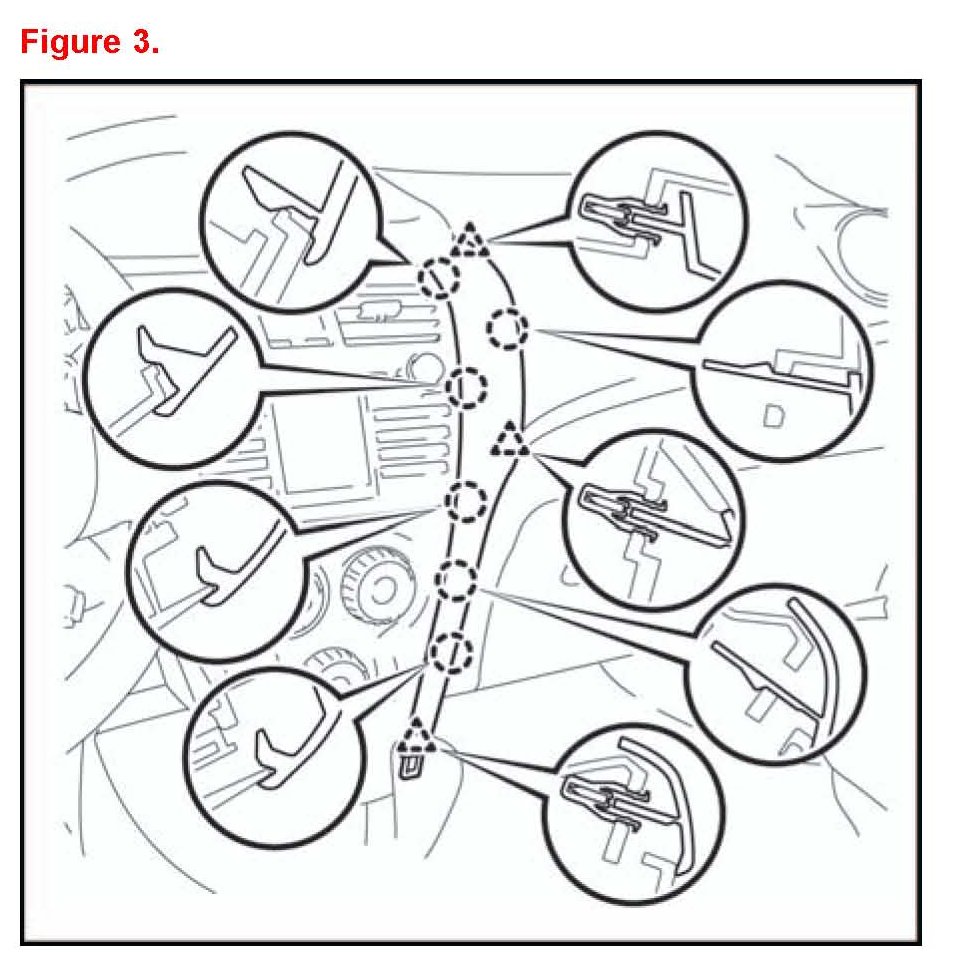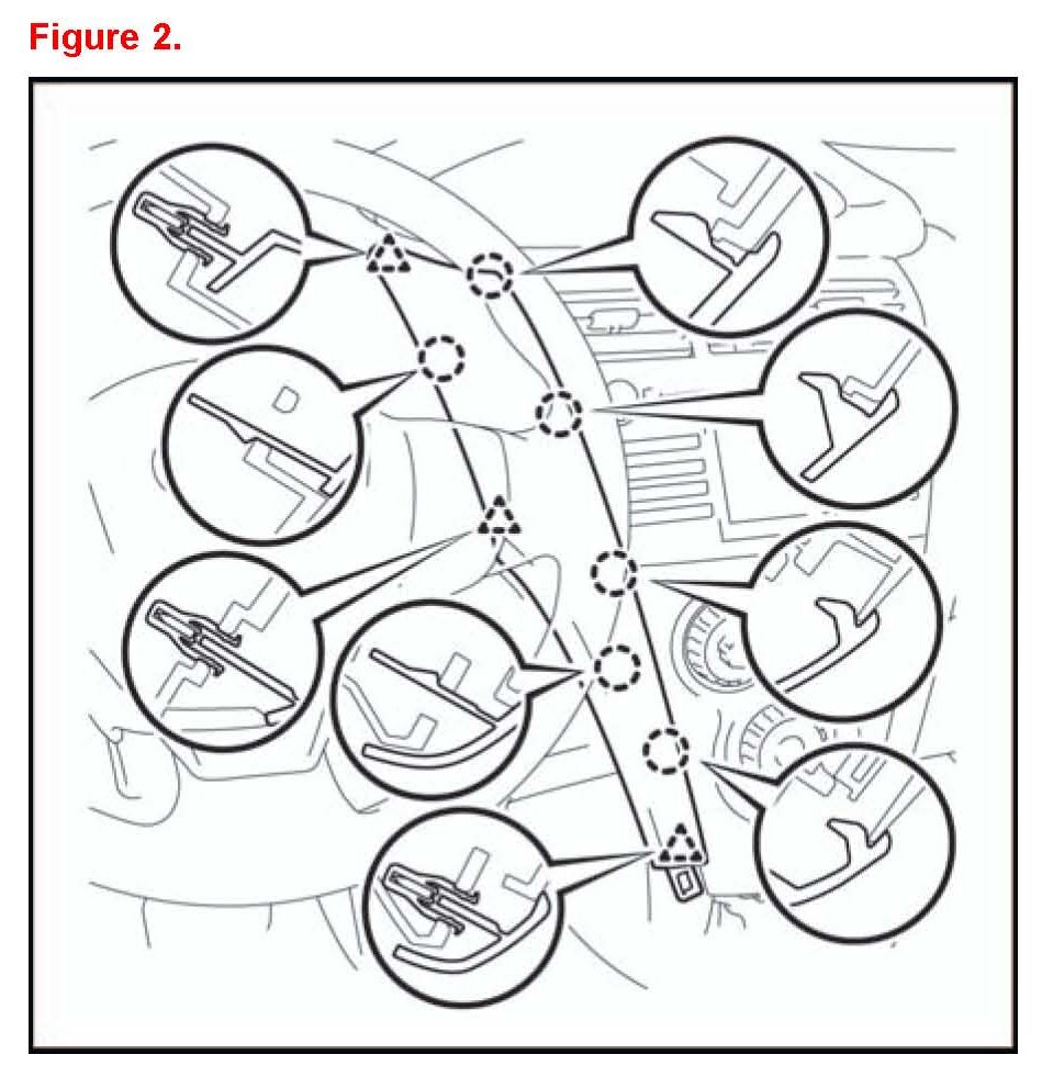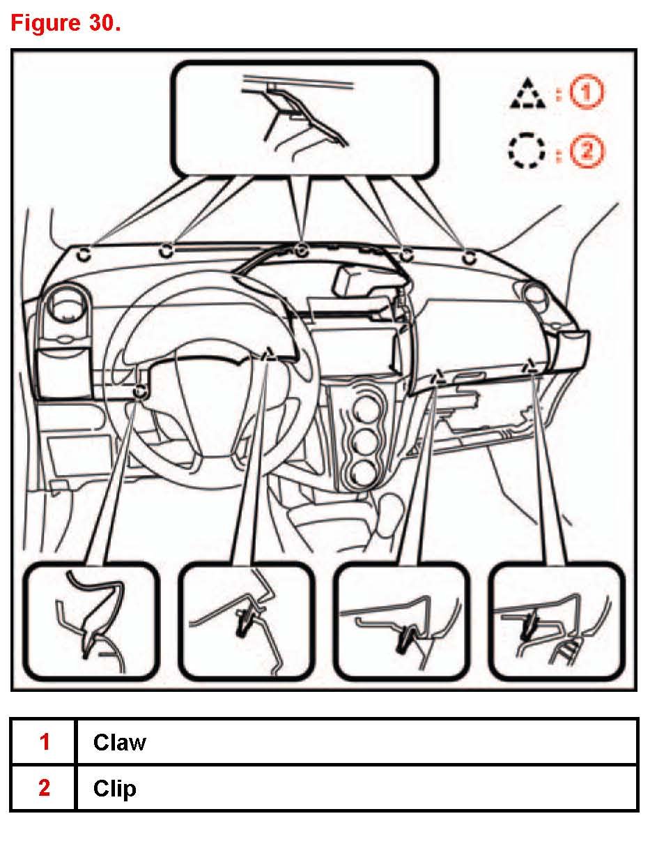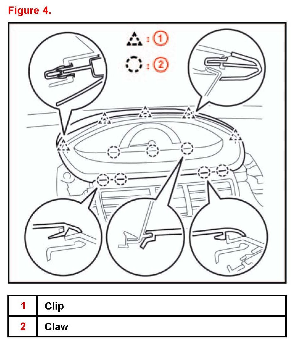 5. Disengage the 7 claws and 5 clips and remove the instrument cluster finish panel.