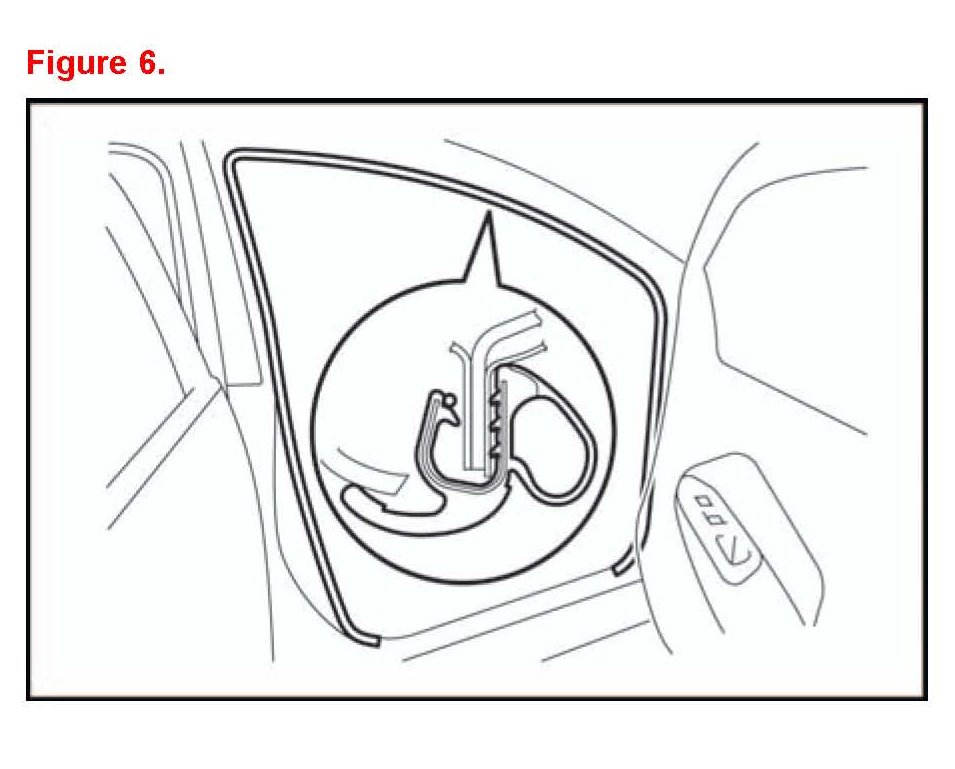 6. Remove the front door opening trim weatherstrip RH.