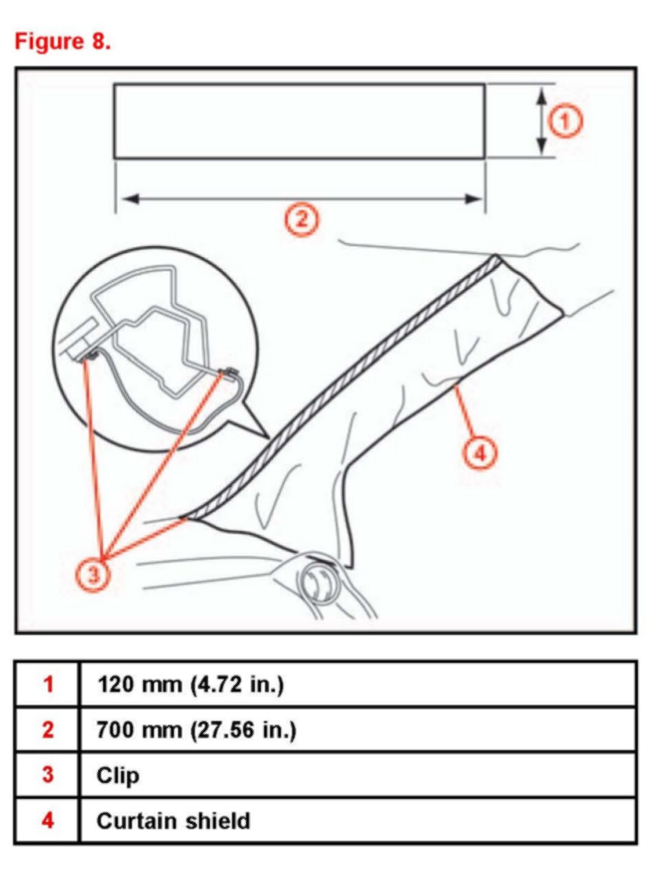 (4) Completely cover the curtain shield airbag with a piece of cloth or nylon and secure the ends of the fabric with adhesive tape as shown in the illustration.