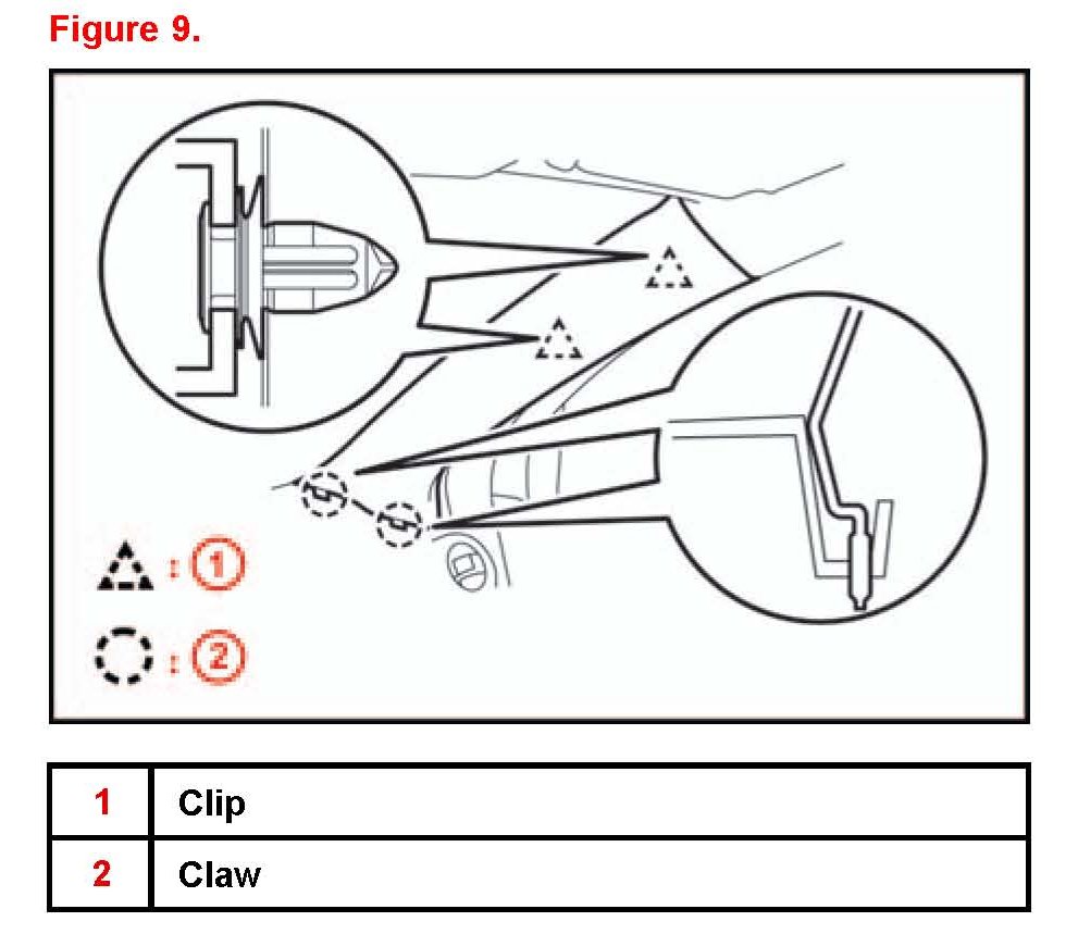 9. Remove the front pillar garnish LH following the procedures from step 8.