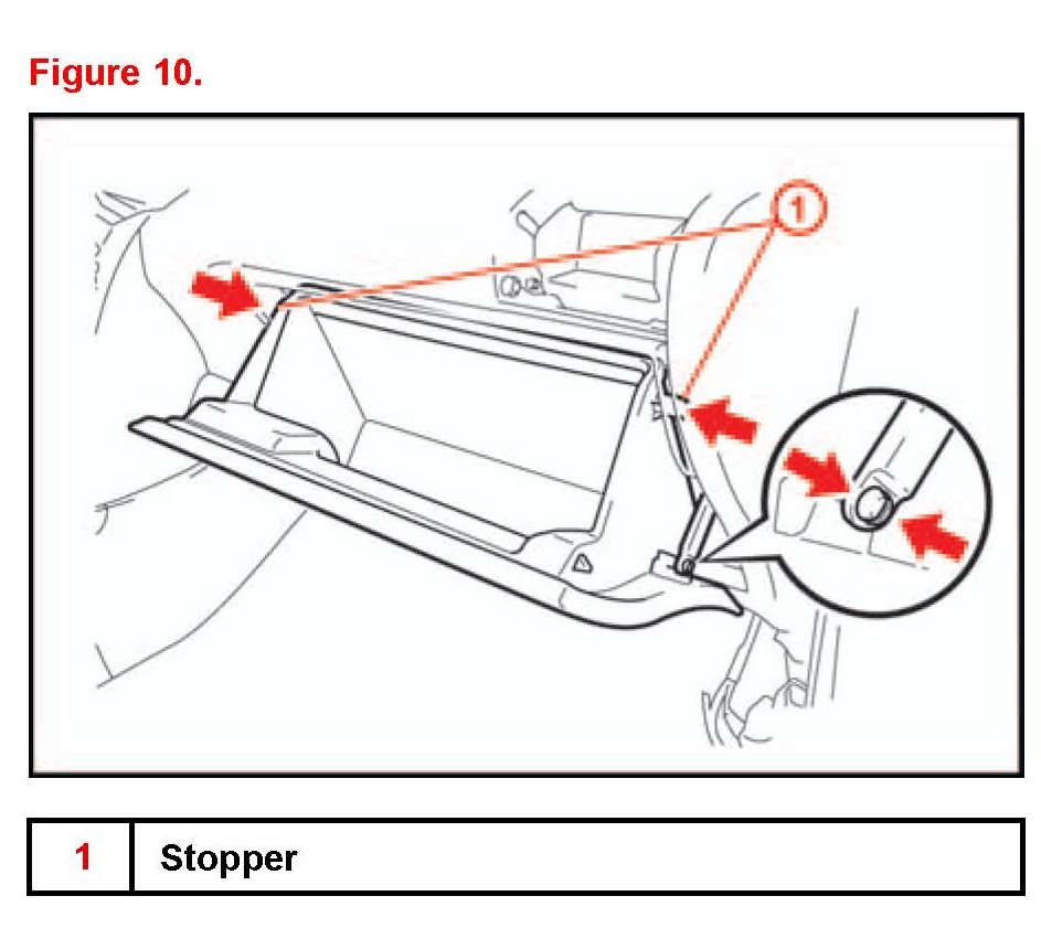 10. Remove the glove compartment door assembly.