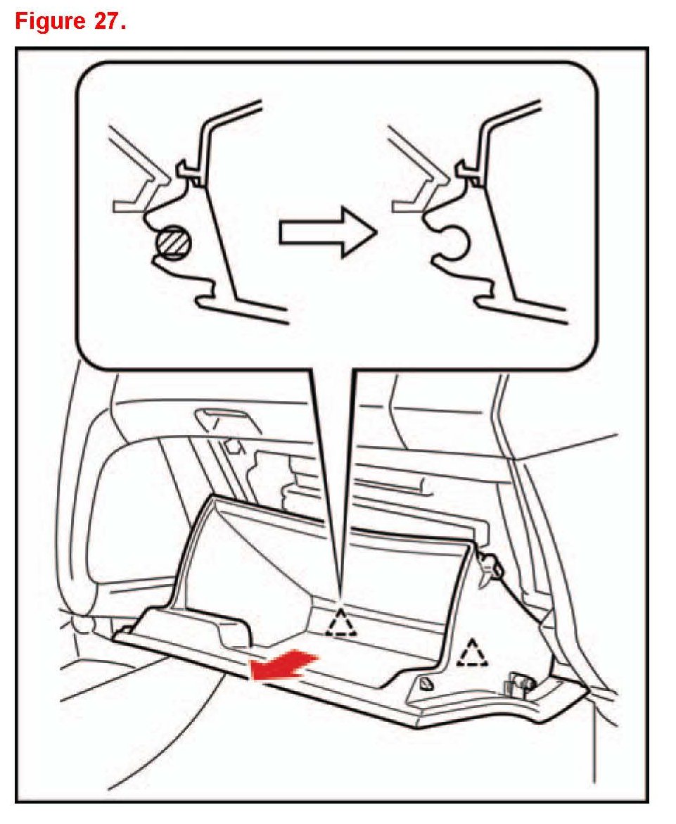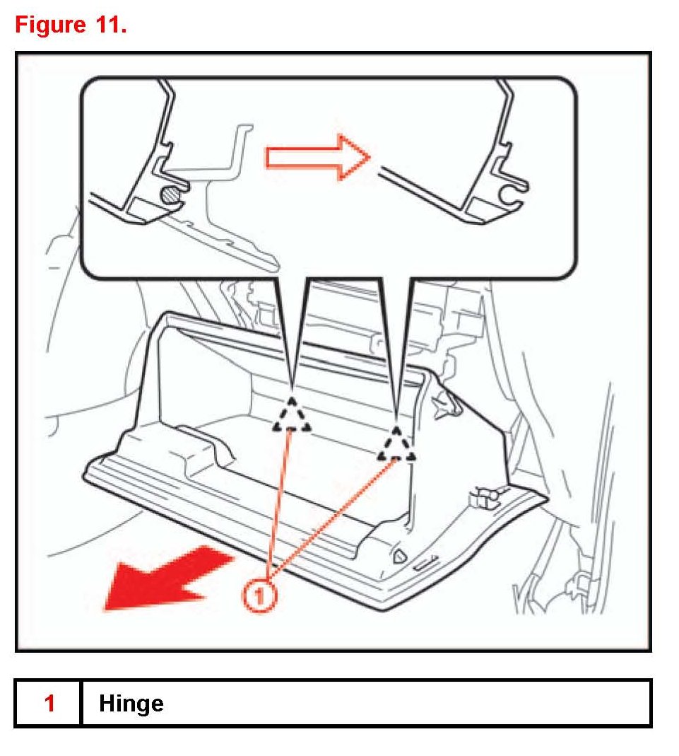 11. Remove the glove compartment door assembly.