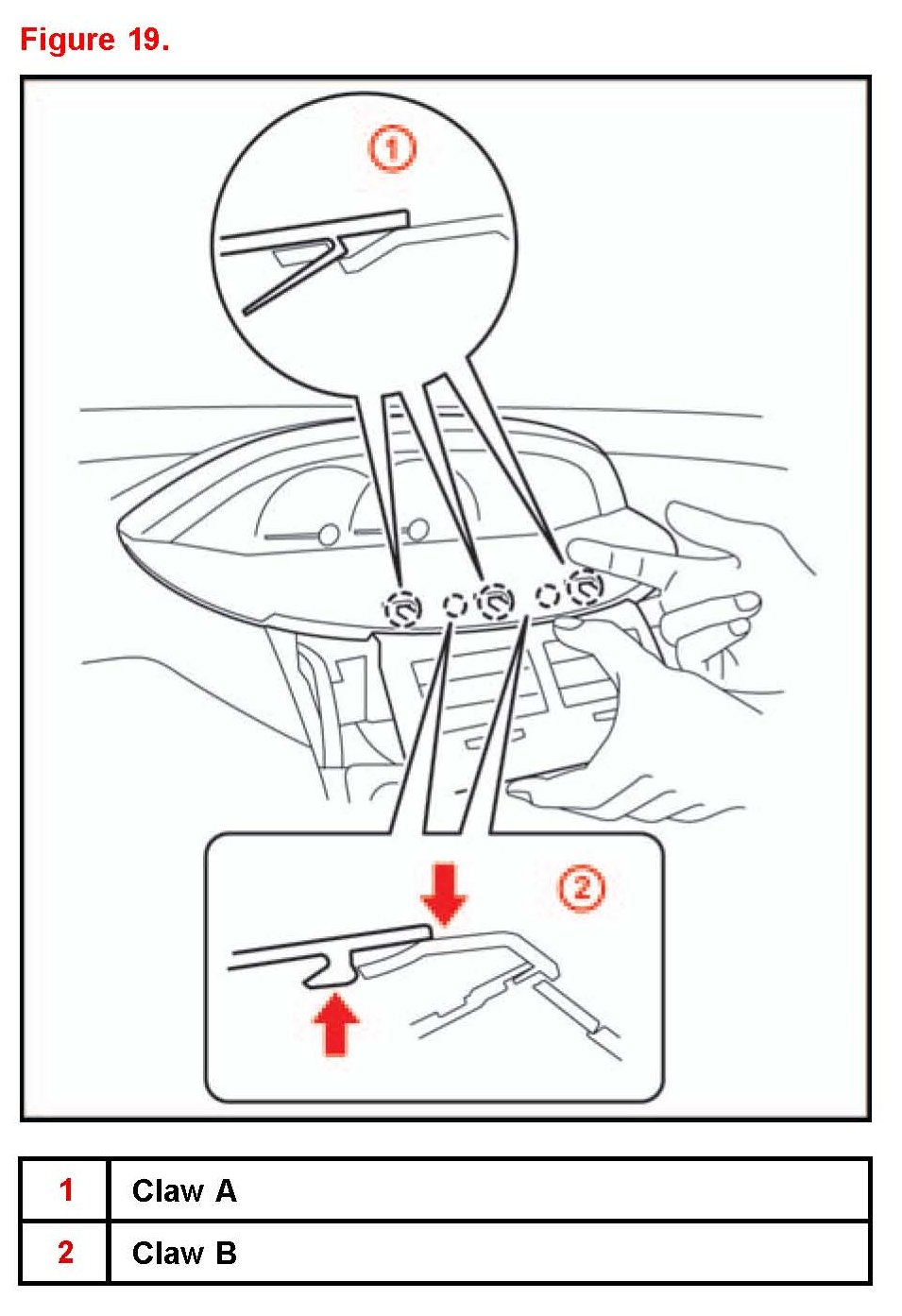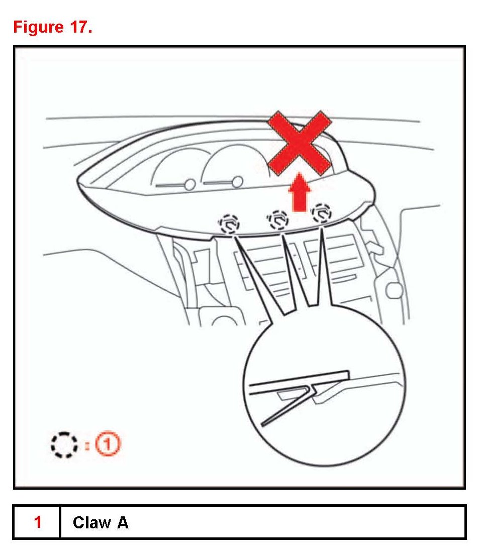 Claw A may break if the instrument cluster finish panel is raised carelessly.