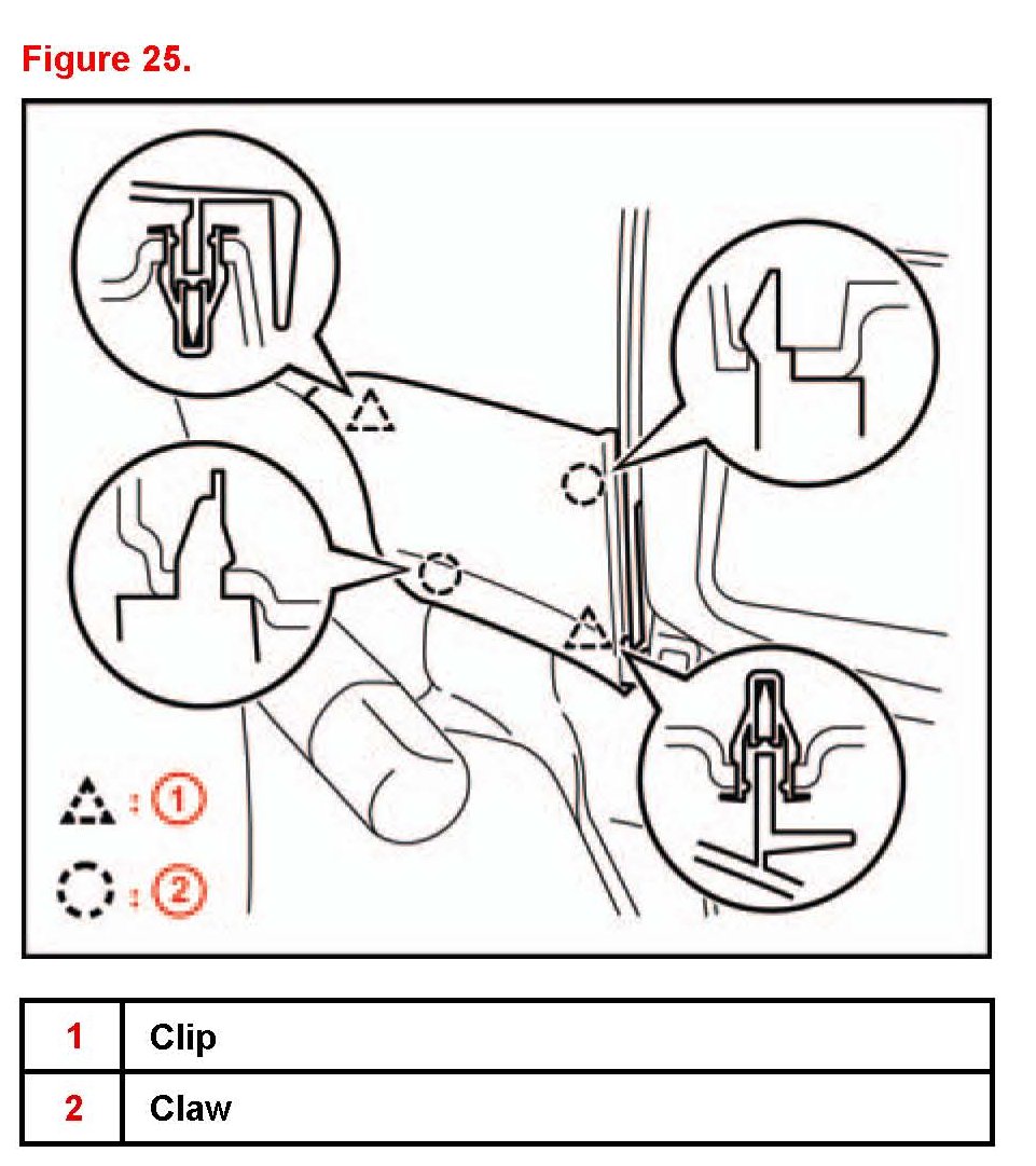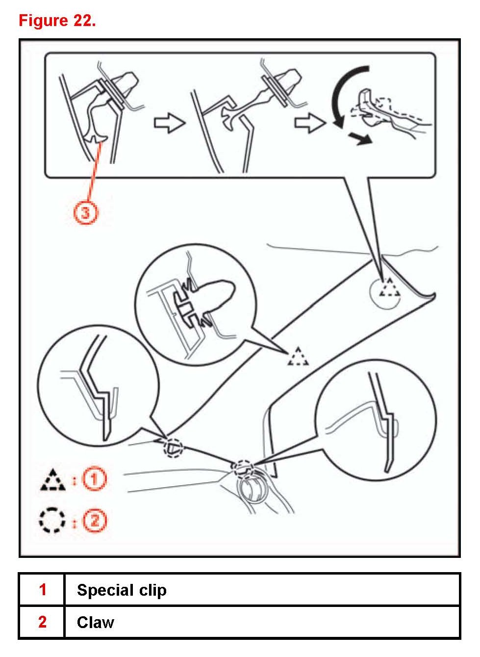 (2) Replace the special clip with a new one when the front pillar garnish is removed.