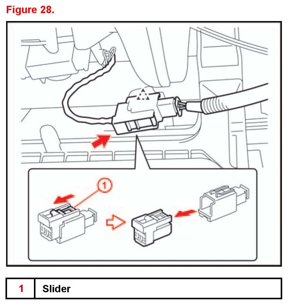 A. Slide the slider and disconnect the passenger airbag connector.