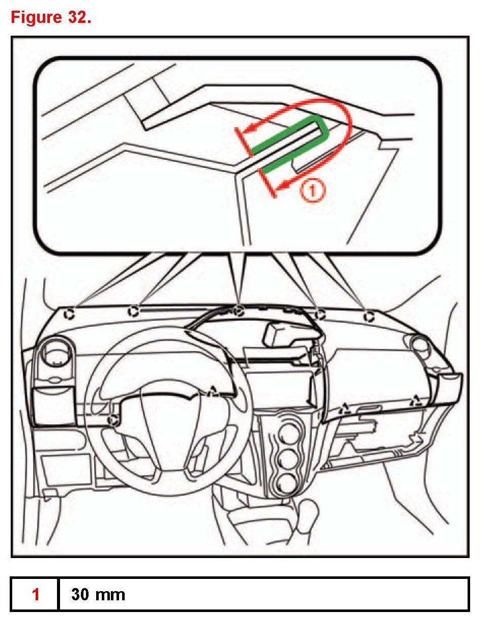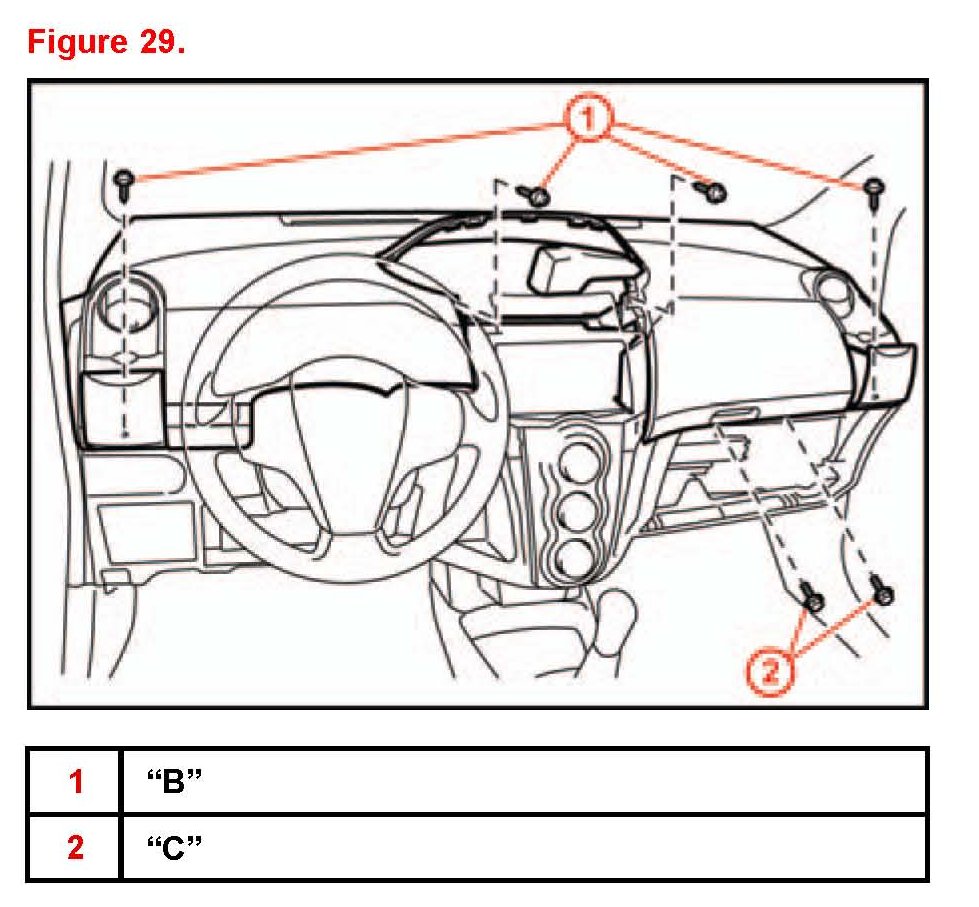 D. Disengage the 7 clips while lifting the instrument panel up. Slide the instrument panel toward the rear of the vehicle to disengage the 5 claws at the front of the instrument panel.