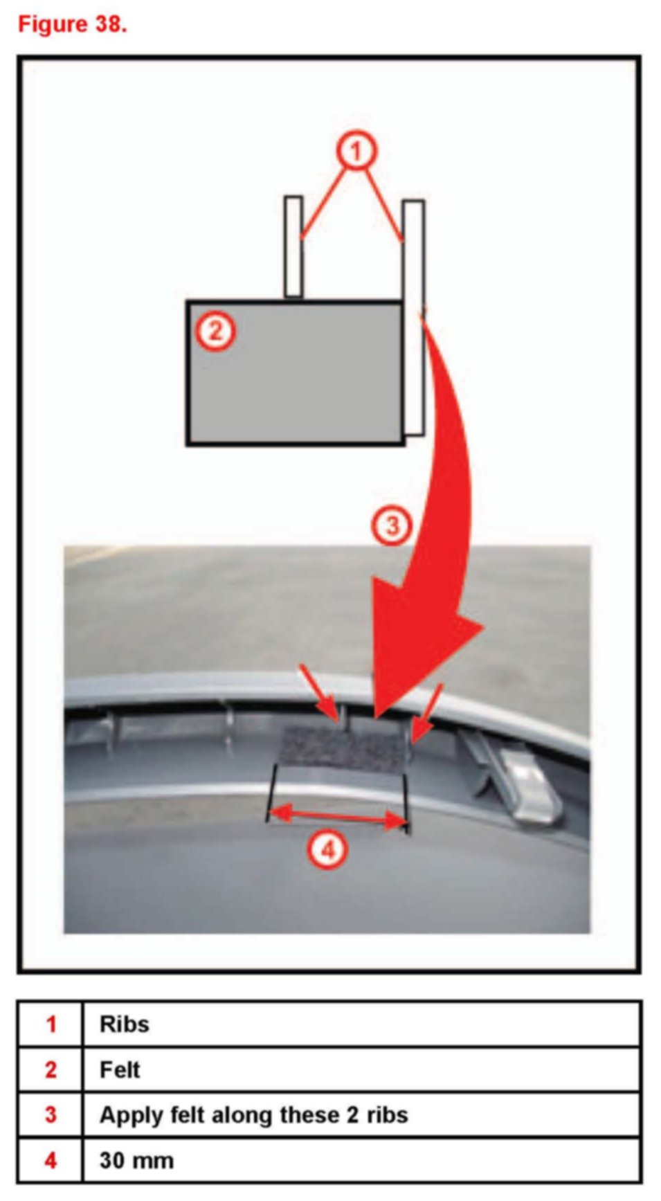 ^ Apply the felt to the upper cowl with the felt folded along the 30 mm side.
