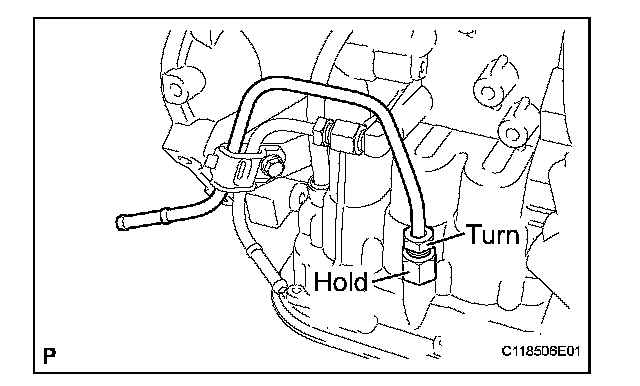 (a) Using SST, remove the outlet oil cooler tube while holding the oil cooler tube union with a spanner.