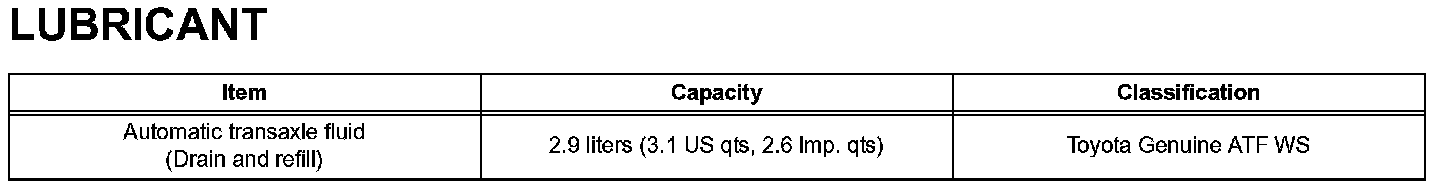 Automatic Transaxle - Lubricant: