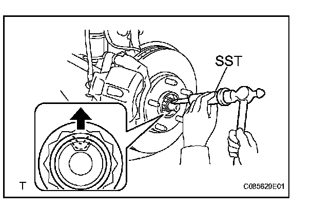 (a) Using SST and a hammer, release the staked part of the axle hub nut.