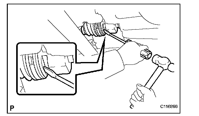 (a) Using a screwdriver, release the staked part of the boot clamp and remove the boot clamp.