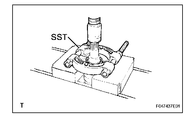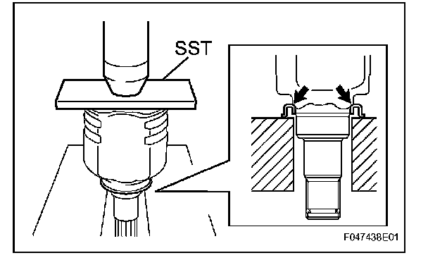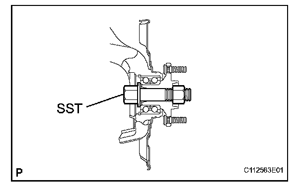 HINT: The hub bearing could be damaged if it is subjected to the vehicle's full weight, such as when moving the vehicle with the drive shaft removed. If it is absolutely necessary to place the vehicle's full weight on the hub bearing, first support it with SST.