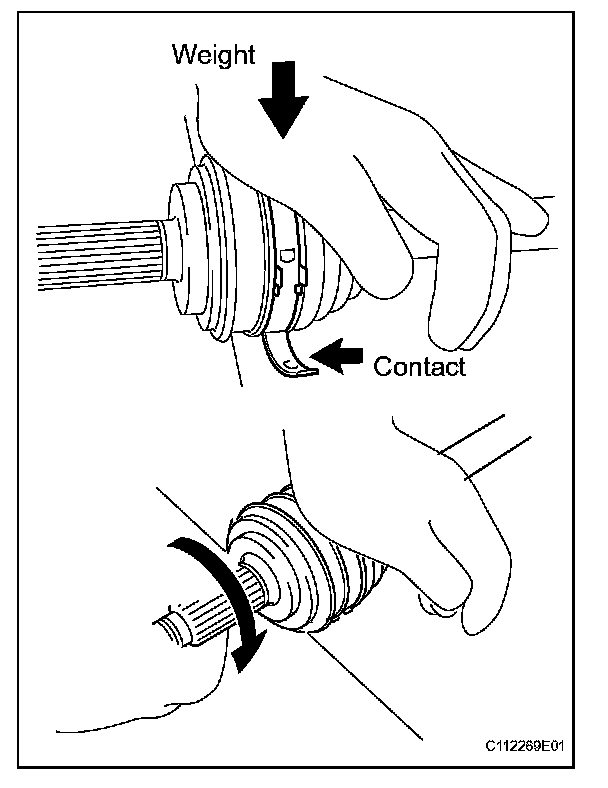 HINT: Confirm whether the drive shaft is securely driven in by checking the reaction force and sound.