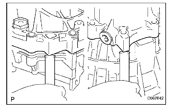 NOTICE: Do not damage the manual transmission case and transaxle case.
