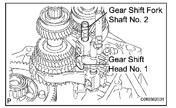(a) Remove the 2 bolts from gear shift fork No. 2 and gear shift head No. 1.
