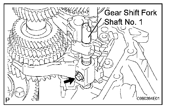 (b) Remove the shift fork set bolt and gear shift fork shaft No. 1 from gear shift fork No. 1.