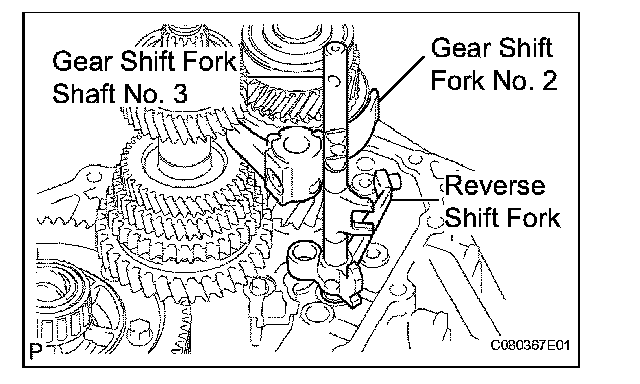 (e) Remove the reverse shift fork from gear shift fork shaft No. 3.