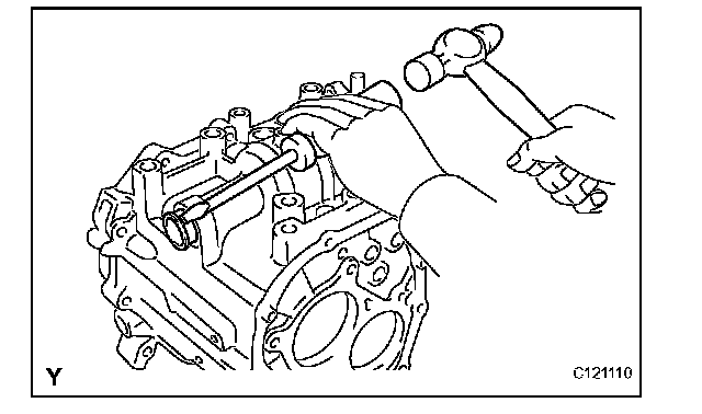 (a) Using SST and a hammer, remove the shift and select lever shaft slide ball bearing.
