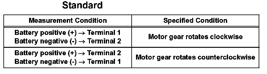 If the result is not as specified, replace the power window regulator motor.