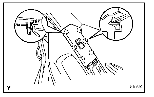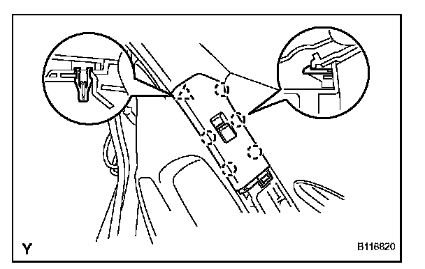 a. Disengage the 2 claws and remove the power window regulator switch.