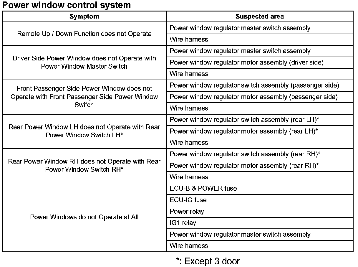 - Inspect the fuses and relays related to the system before inspecting the suspected areas below.