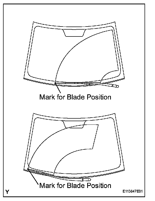 2. Check the automatic stop position when the front wiper motor operation has stopped.