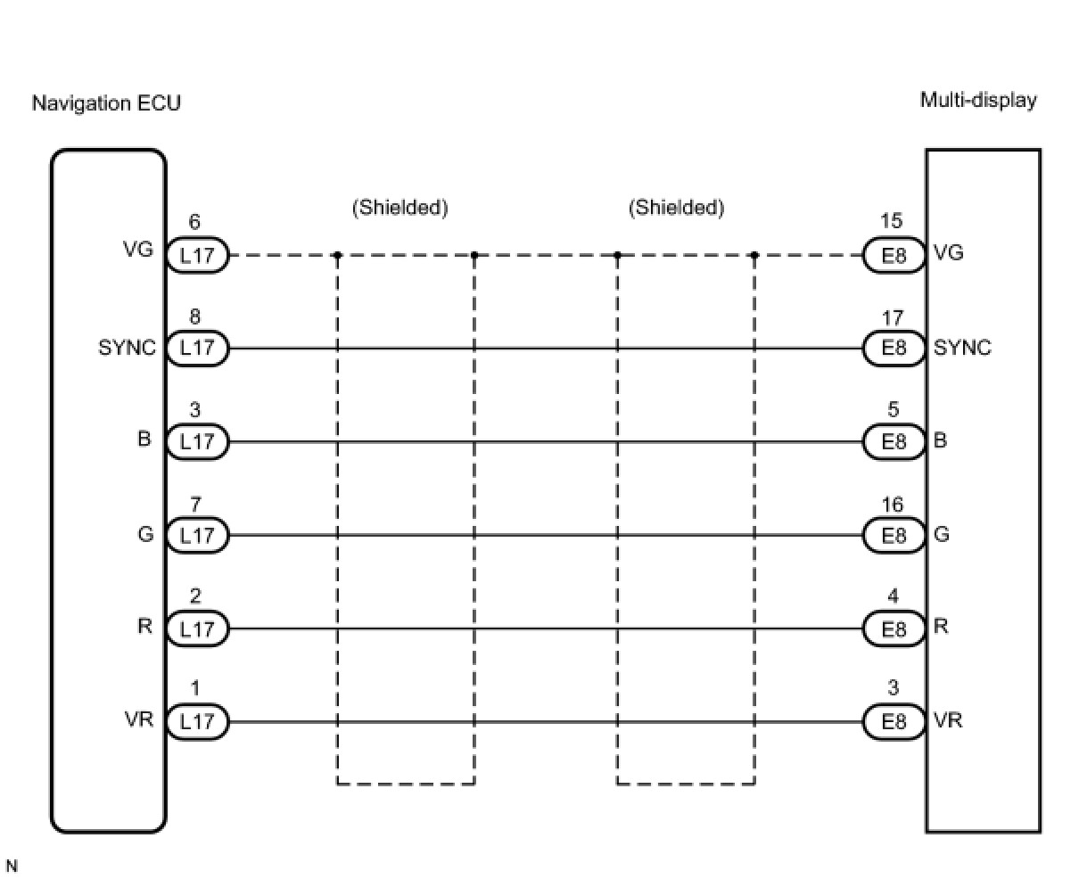 Display Signal Circuit Between Navigation ECU and Multi-Display
