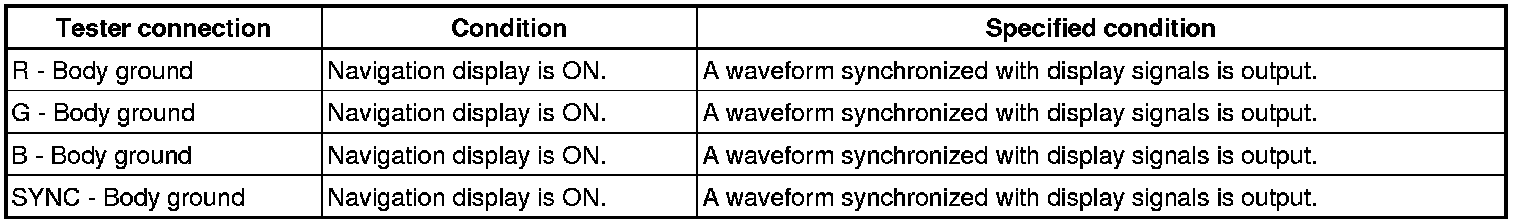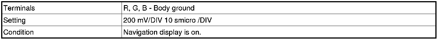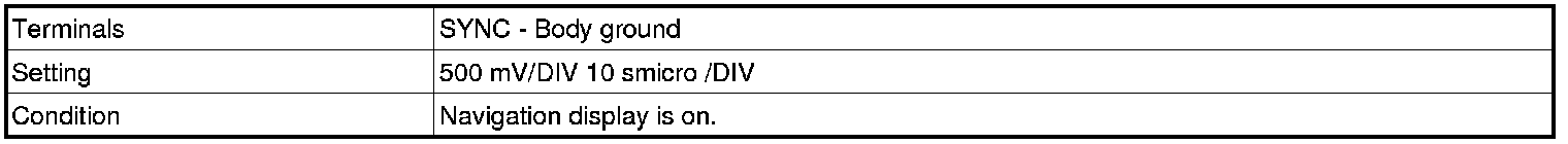 - The waveform pattern may differ from those shown in the illustrations below due to differences in oscilloscope settings. A normal navigation ECU operating condition can be determined if any waveform is output.