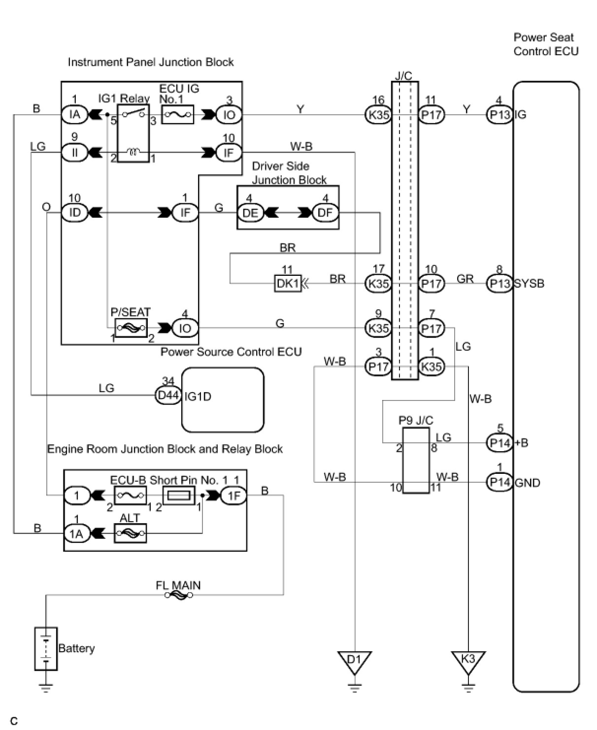SEAT: FRONT POWER SEAT CONTROL SYSTEM (w/ Memory): ECU Power Source Circuit