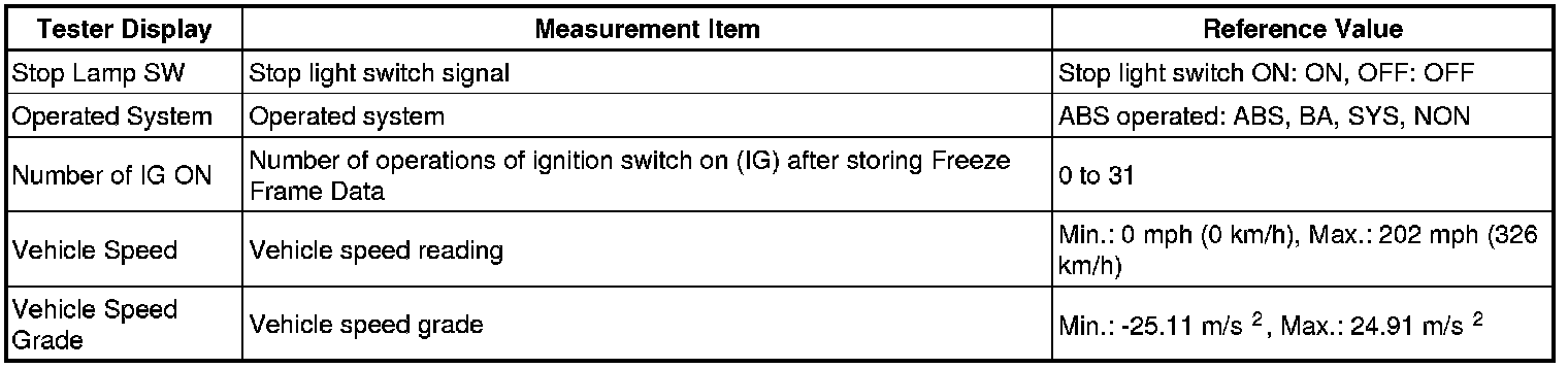 - Whenever a DTC is detected or the ABS operates, the skid control ECU stores the current vehicle (sensor) status as freeze frame data.