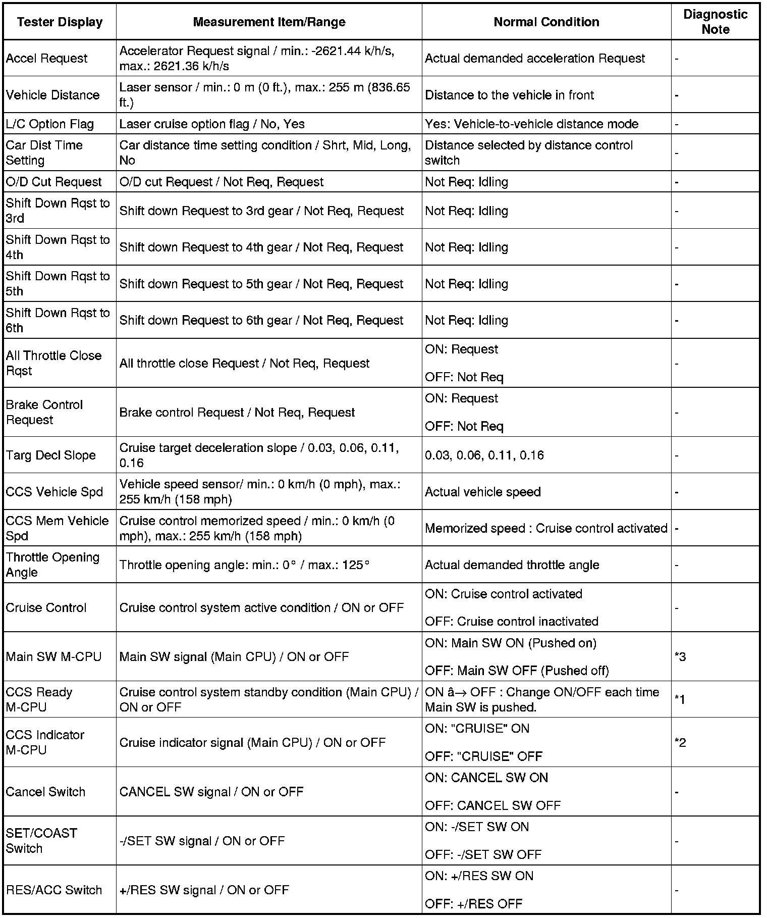 *3 is OK, but CRUISE main indicator light does not come on -> Indicator, wire harness, or ECM failure