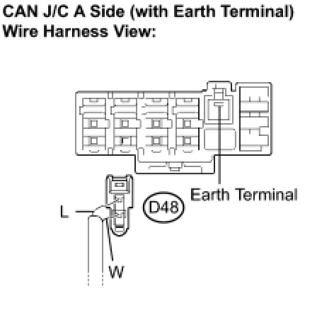 (a) Reconnect the steering sensor connector (D48) to the CAN J/C A side (with earth terminal).