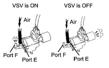 When the engine is operating in the low-to-mid speed range, this control operates the AICV to close one of the air cleaner inlets. When the engine speed is more than 3,600 rpm and the opening angle of the throttle valve is more than 60°, the ECM activates the VSV and opens the AICV.