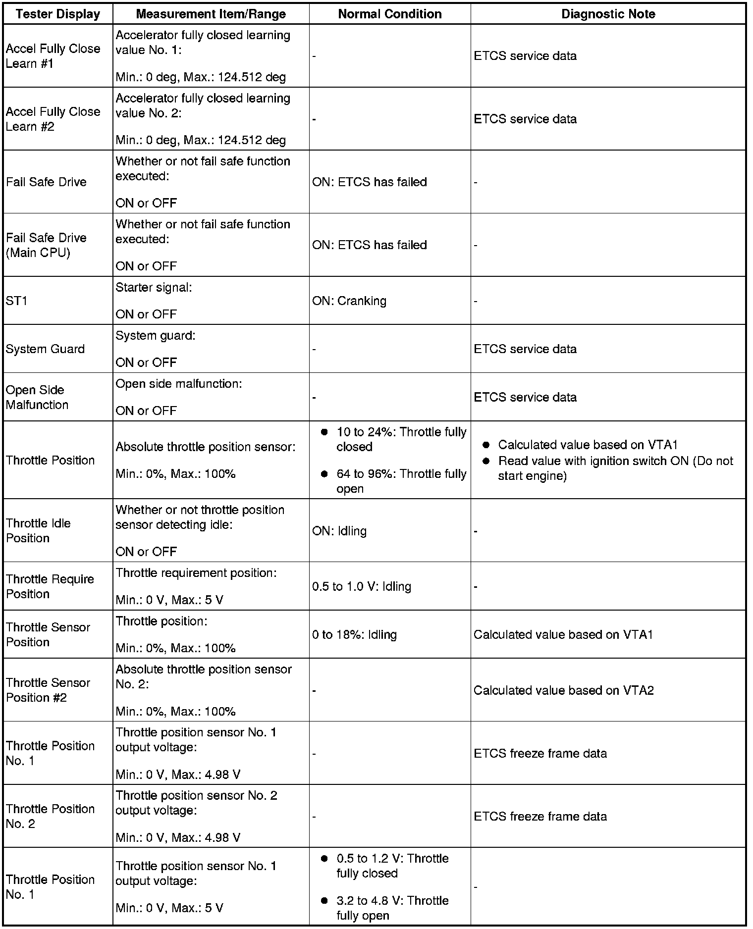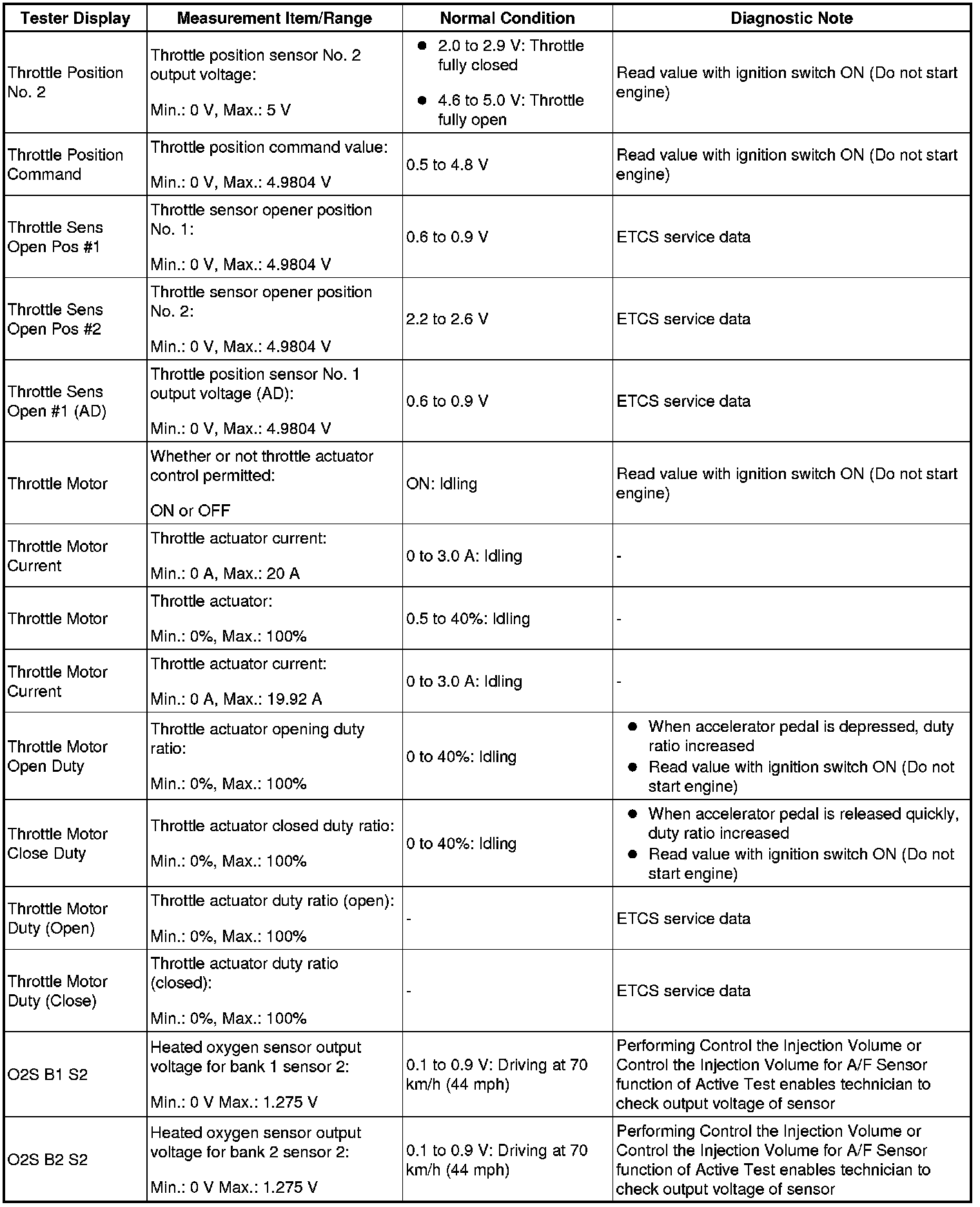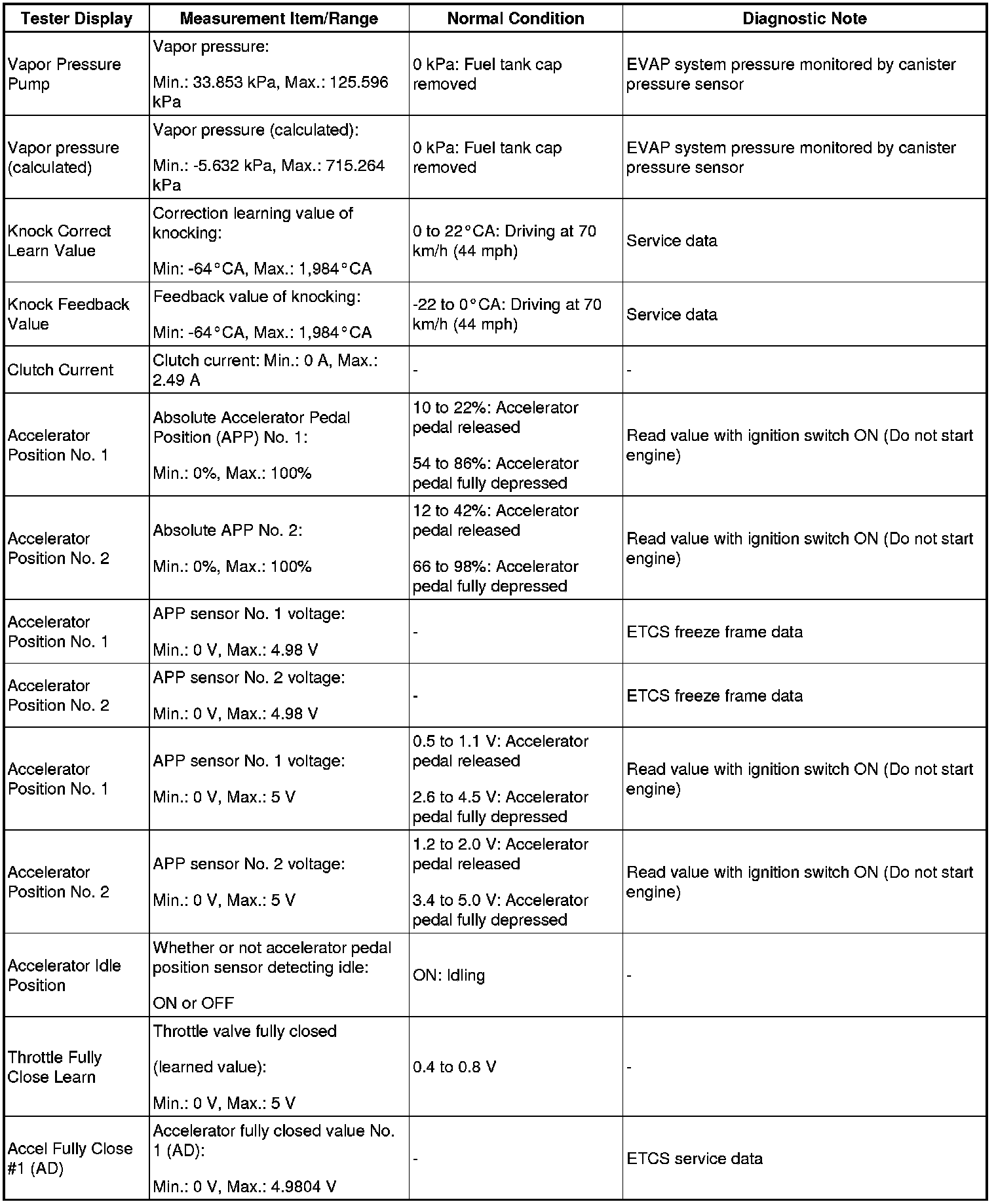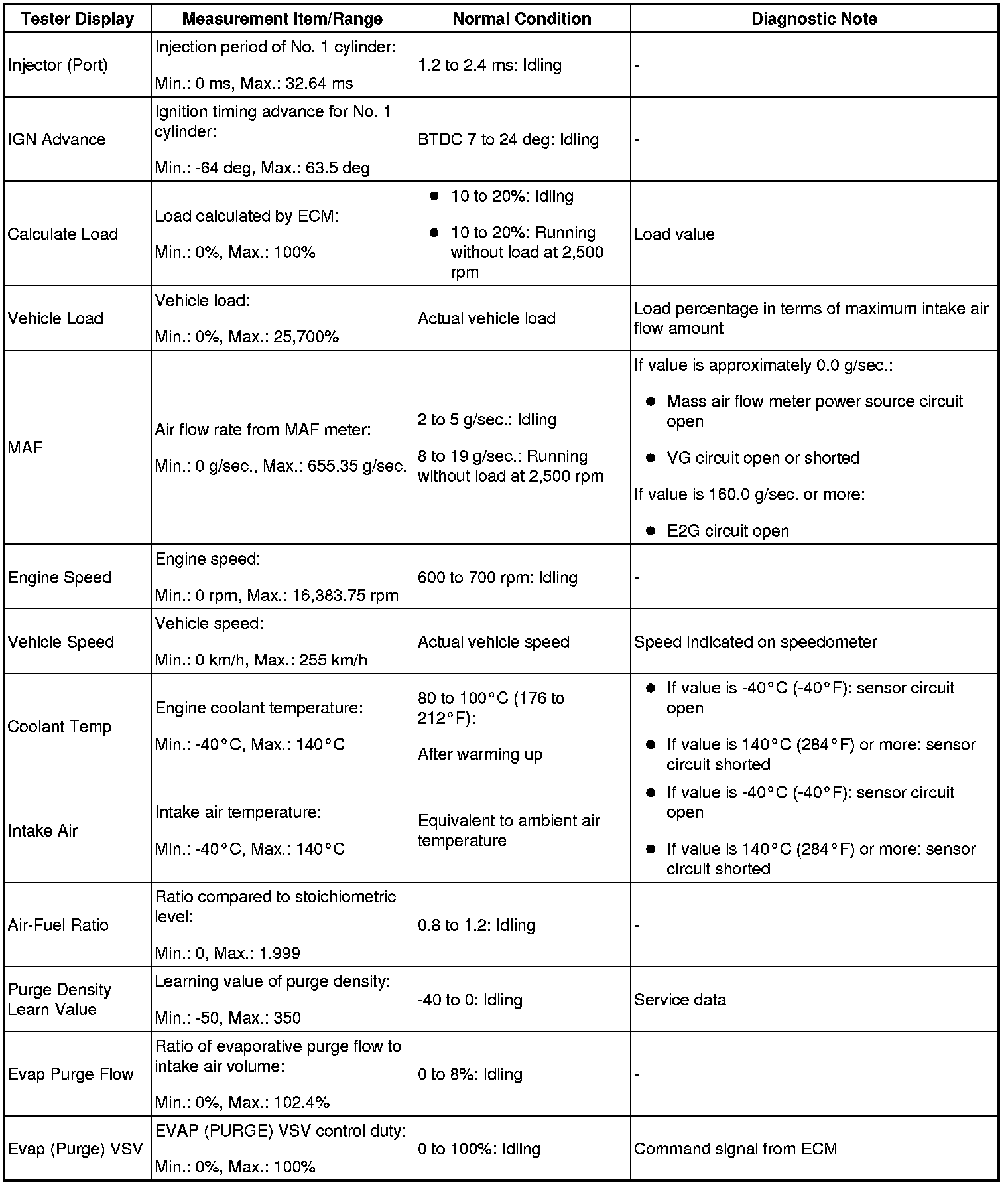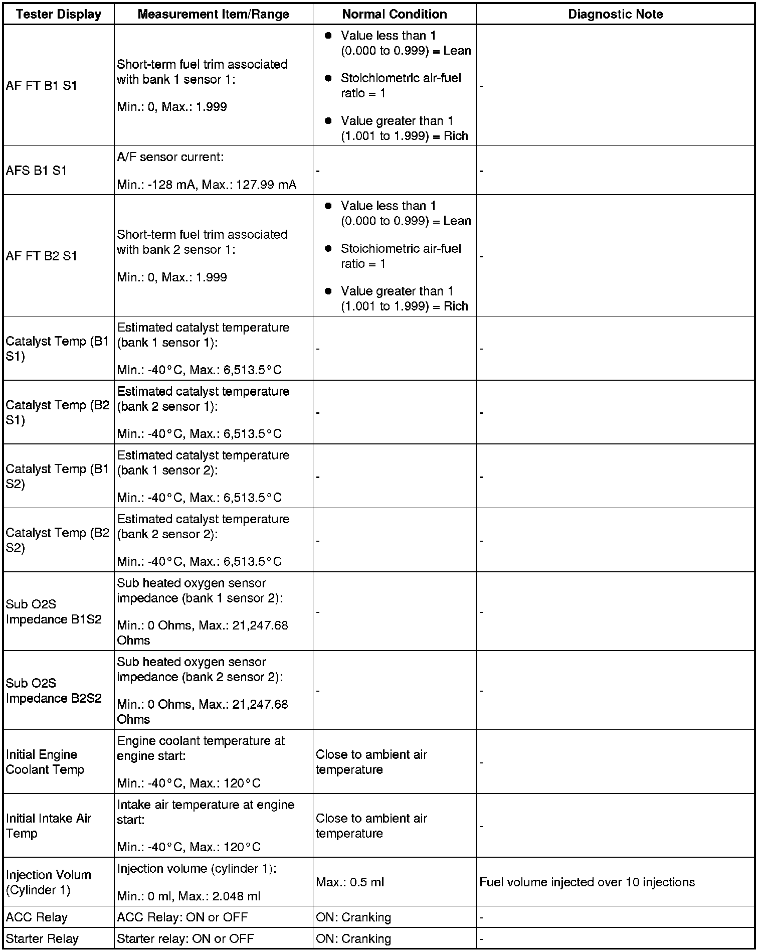 HINT: By reading the Data List displayed on Techstream, you can check values, including those of the switches, sensors, and actuators, without removing any parts. Reading the Data List as the first step in troubleshooting is one method of shortening diagnostic time.