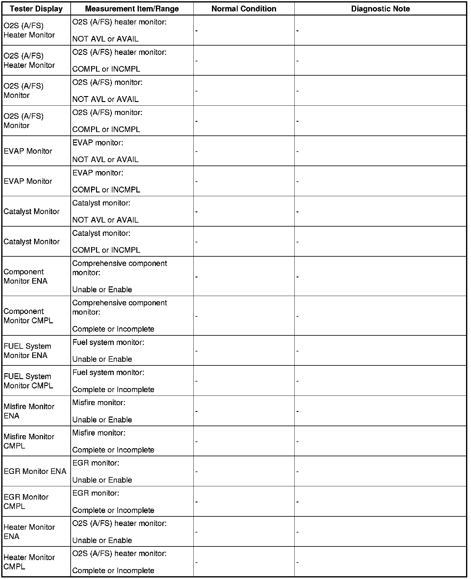 NOTICE: In the table below, the values listed under Normal Condition are reference only. Do not depend solely on these values when determining whether or not a part is faulty.