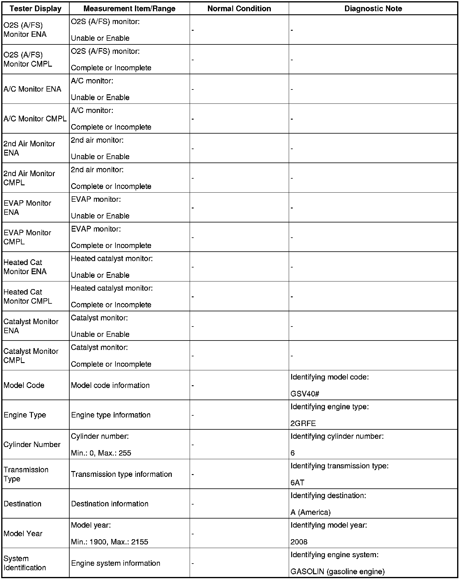 2GR-FE ENGINE CONTROL SYSTEM: SFI SYSTEM: DATA LIST / ACTIVE TEST