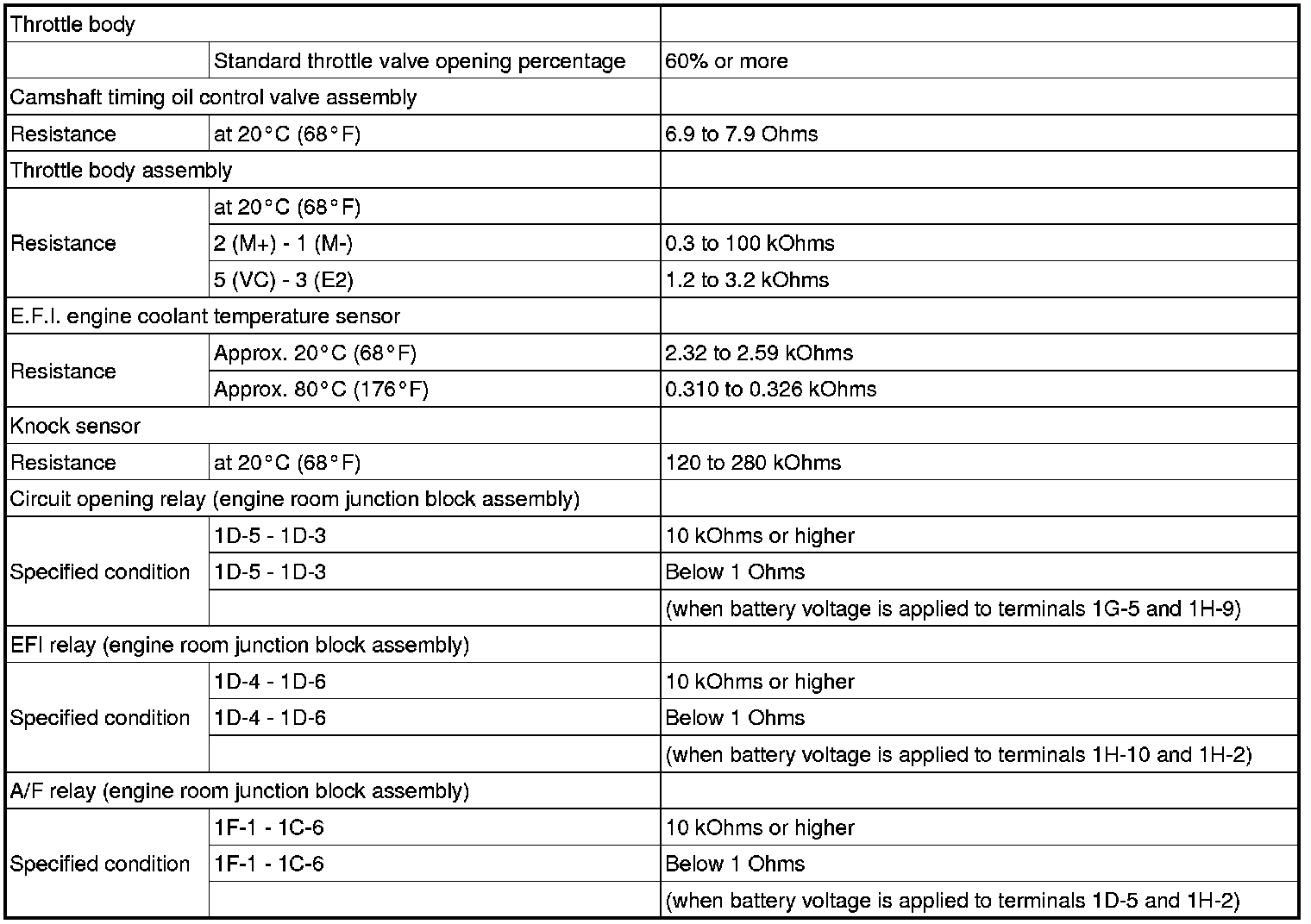 SERVICE SPECIFICATIONS: 2GR-FE ENGINE CONTROL SYSTEM: SERVICE DATA