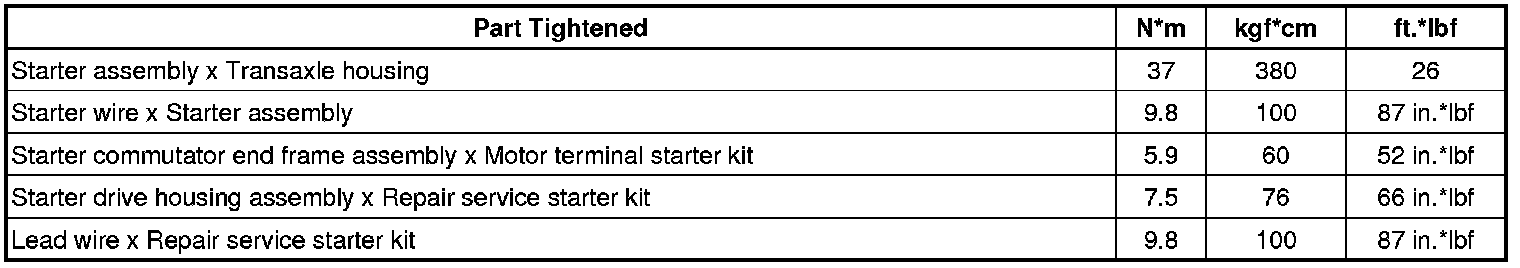 SERVICE SPECIFICATIONS: 2GR-FE STARTING: TORQUE SPECIFICATIONS