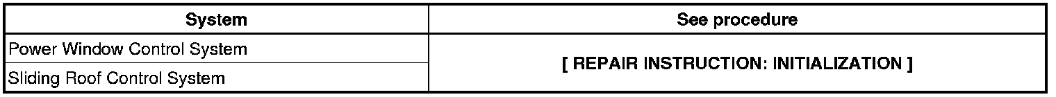 NOTICE: When disconnecting the negative (-) battery terminal, initialize the following system(s) after the terminal is reconnected.