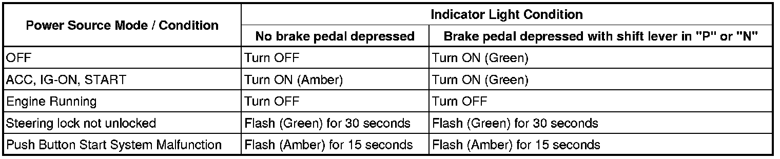 Engine start conditions or system malfunctions can be checked by the status of the engine switch indicator light.