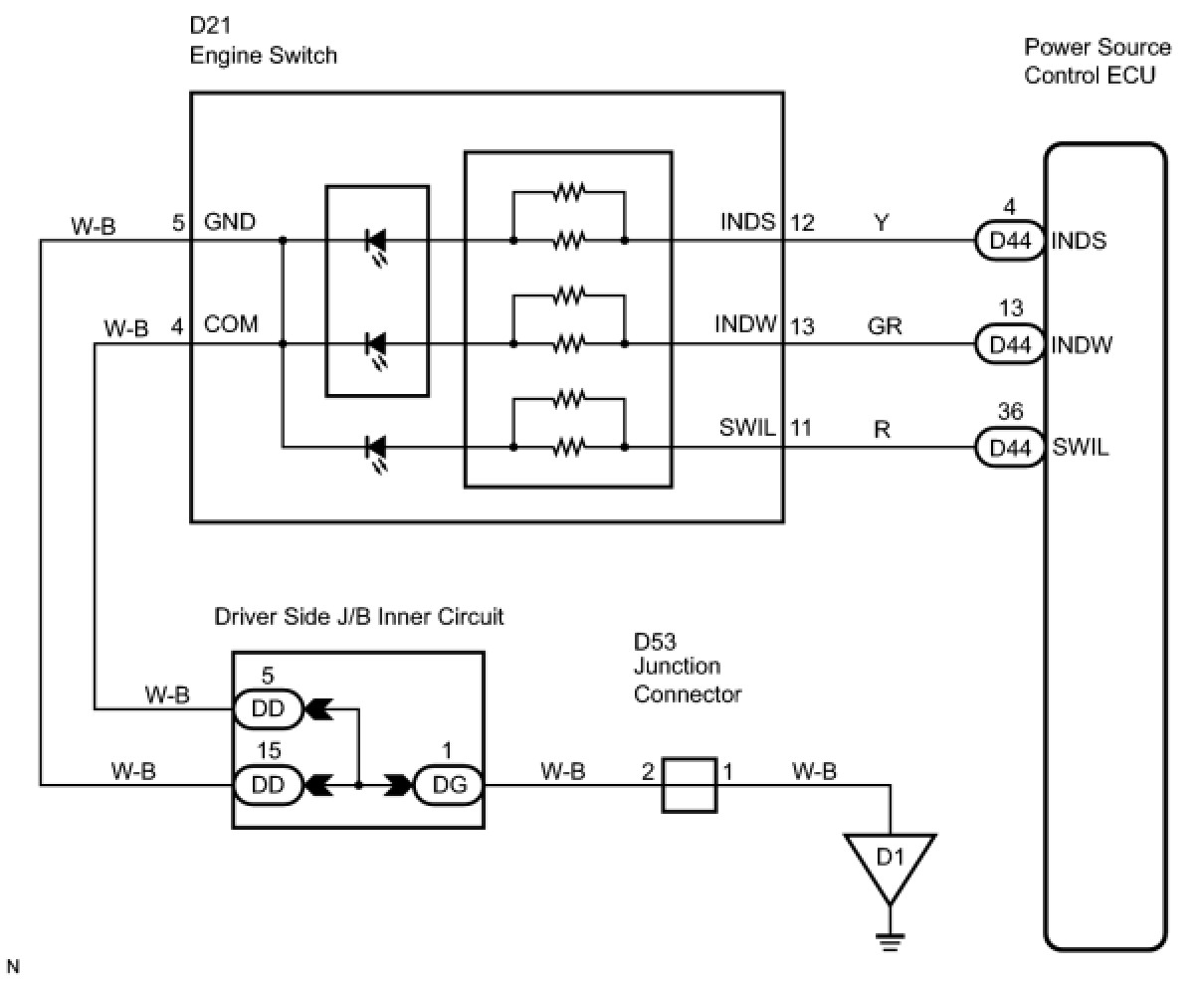 2GR-FE STARTING: SMART KEY SYSTEM: Engine Switch Indicator Circuit