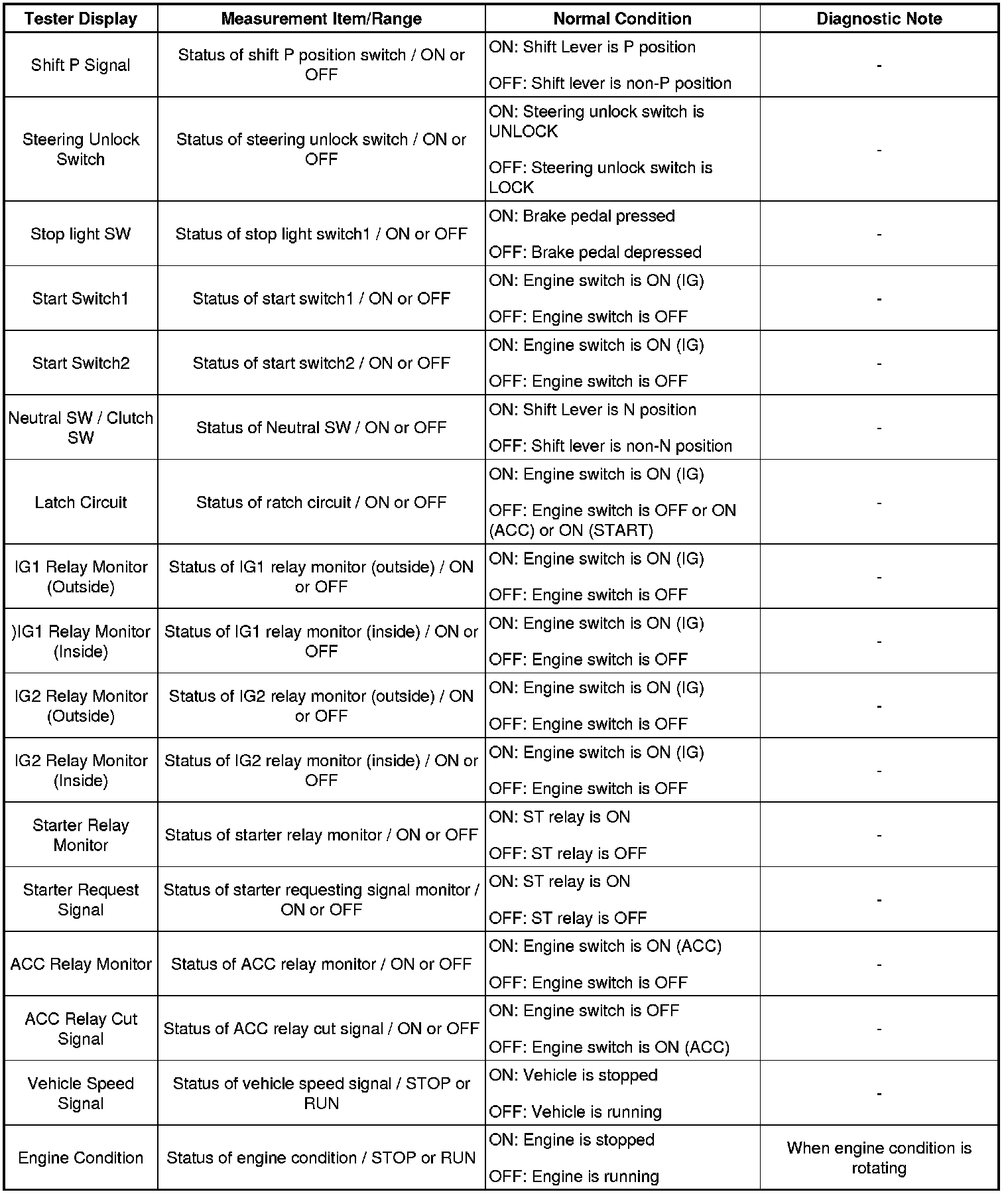 HINT: Using Techstream's Data List allows switch, sensor, actuator and other item values to be read without removing any parts. Reading the Data List early in troubleshooting is one way to save time.