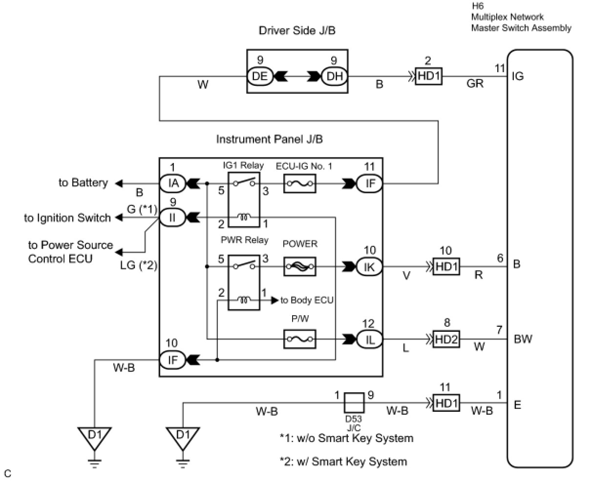 1. CHECK WIRE HARNESS (MULTIPLEX NETWORK MASTER SWITCH - BATTERY AND BODY GROUND)